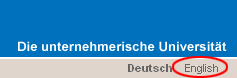 Die jeweils aktivierte Sprache ist an der Fettschrift erkennbar. Nach der Sprachumschaltung auf Englisch wird die deutsche Navigation durch die englische ersetzt.