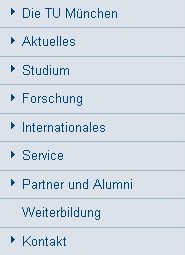 Von hier aus gelangen Sie zu dem entsprechenden Inhalt, wenn Sie auf die Schrift klicken. Gleichzeitg klappt das Menü auf (vorausgesetzt es gibt einen Unterpunkt).