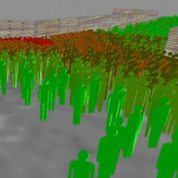 Der Simulator zeigt Zehntausende Personen einzeln an. (Bild: REPKA / TUM)