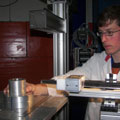 Uwe Wasmuth im FRM II mit seinem Werkstück.