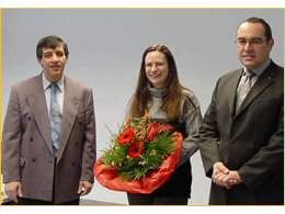 Prof. Antonio Delgado (l.) und Albert Berger gratulieren Karolin Schmälzlin